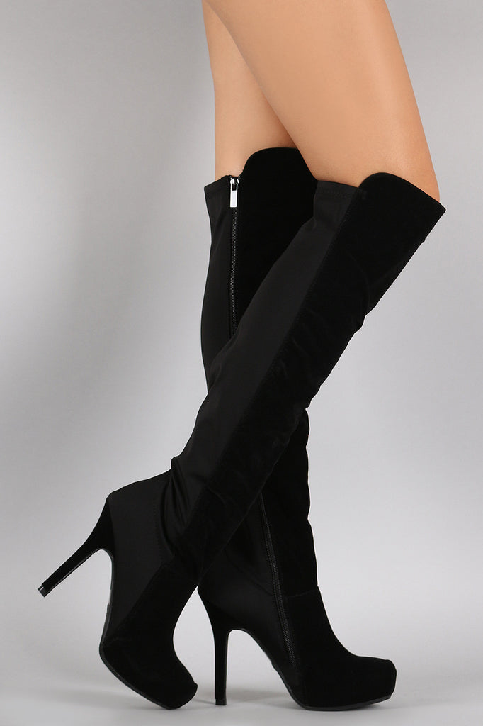 Dollhouse Suede Contrast Panel Stiletto Over-The-Knee Boots
