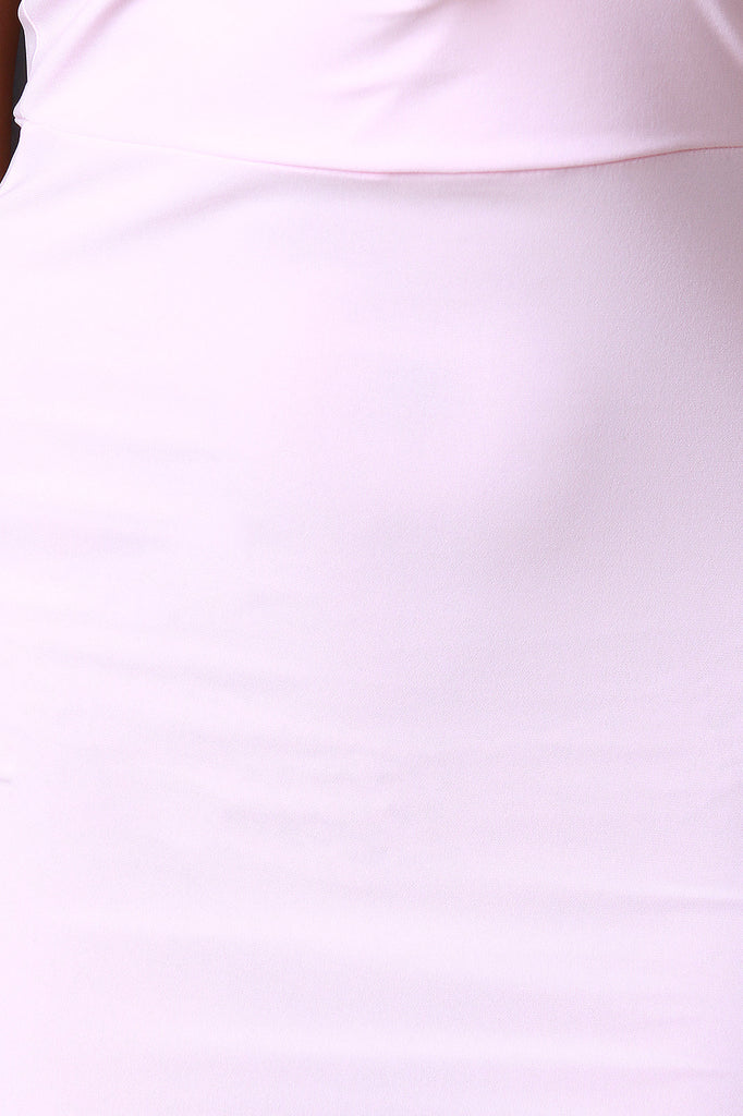 This midi dress features a u-neckline, sleeveless construction with spaghetti shoulder straps, and bodycon fit. Finished with an open back and gathered material . Accessories sold separately. Made in U.S.A. 96% Polyester, 4% Spandex.