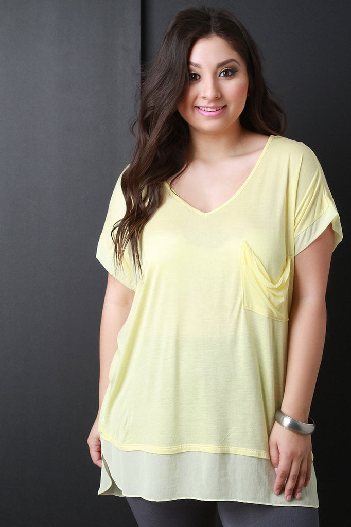Pocket Short Sleeve Sheer Hem Top
