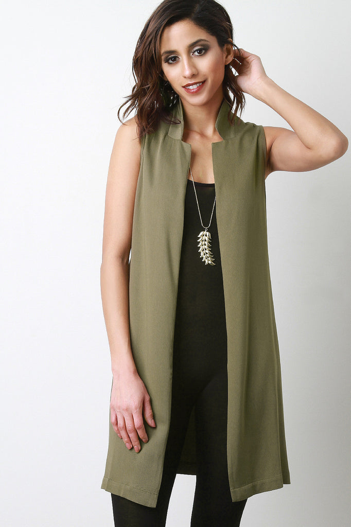 Open Front Notch-Collar Side Slit Vest Jacket