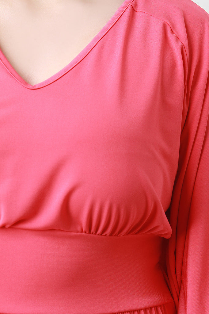 This plus size maxi dress features an empire waist band, v-neckline, and cold shoulder butterfly sleeves. Accessories sold separately. 95% Polyester, 5% Spandex.