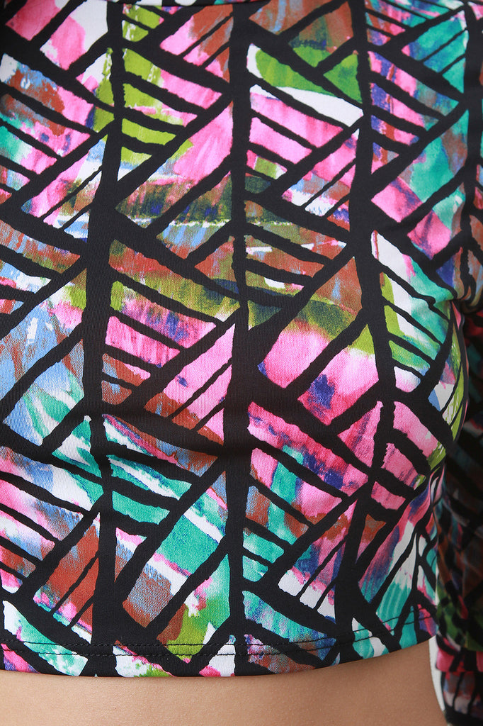 Patterned Print Mock Neck Long Sleeve Crop Top