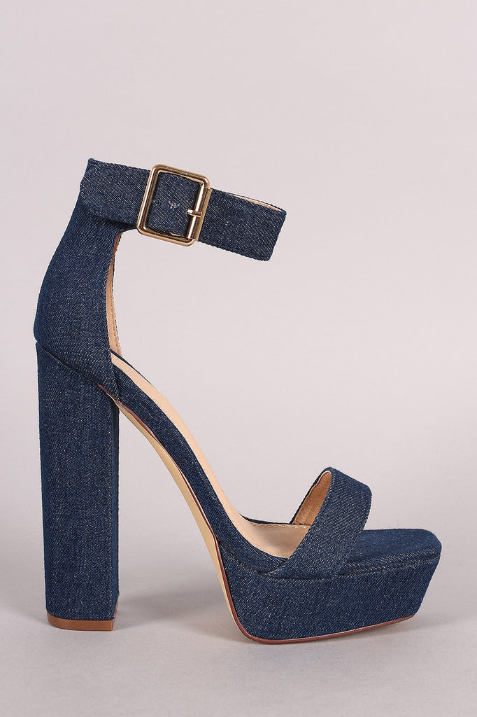 Liliana Denim Buckled Ankle Strap Chunky Platform Heel