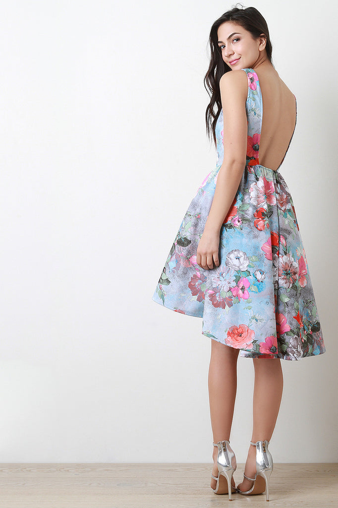 Floral Open Back High Low Hem Dress