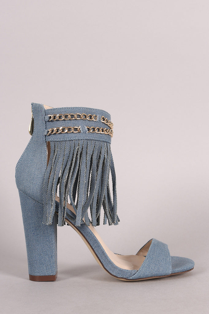 Denim Chained Fringe Cuff Chunky Heel