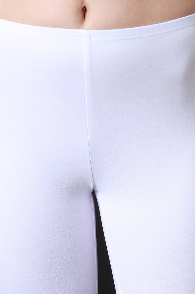 These leggings feature a smooth jersey knit fabrication, elasticized waistline, and taper cut fit. Accessories sold separately. Made in U.S.A. 95% Polyester, 5% Spandex.