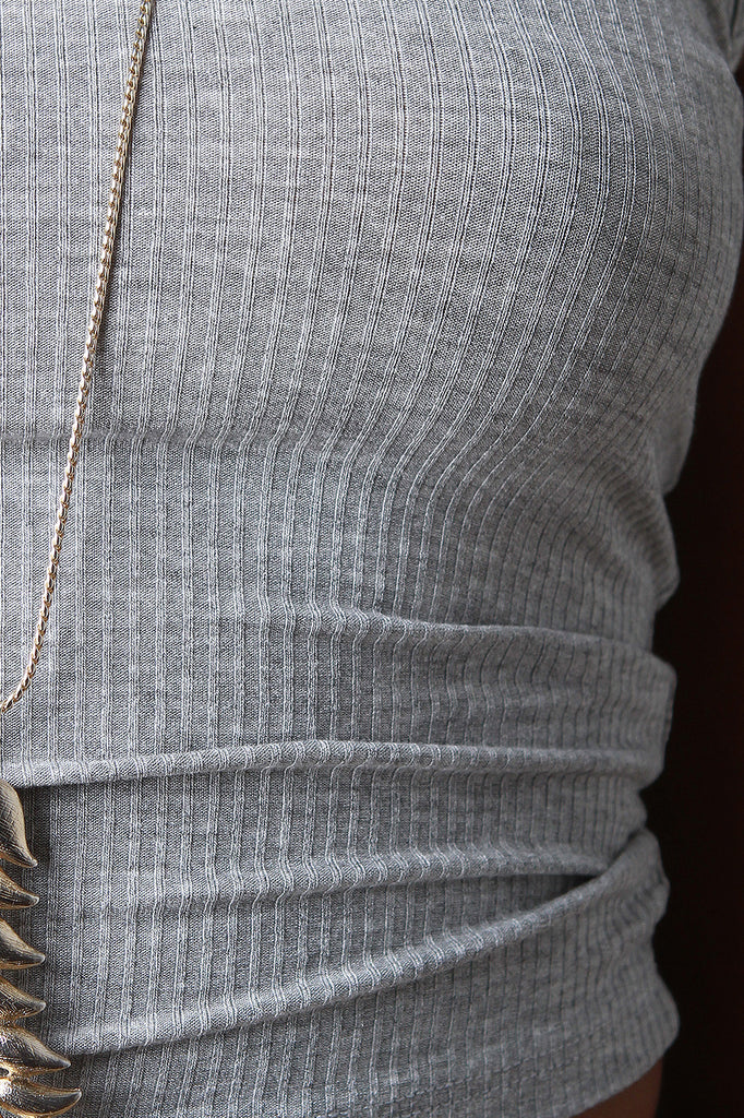 This crop top features a rib knit fabrication, scoop neckline, spaghetti straps, and slim fit. Accessories sold separately. Made in U.S.A. 95% Rayon, 5% Spandex.