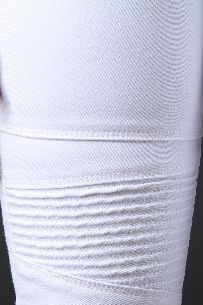 This edgy jeans feature a stretch denim fabrication, classic 5-pocket style, zipper fly and single button closure, patch knee detail with top stitching, skinny jean fit. Accessories sold separately. 52% Cotton, 21% Viscose, 25% Polyester, 2% Spandex.