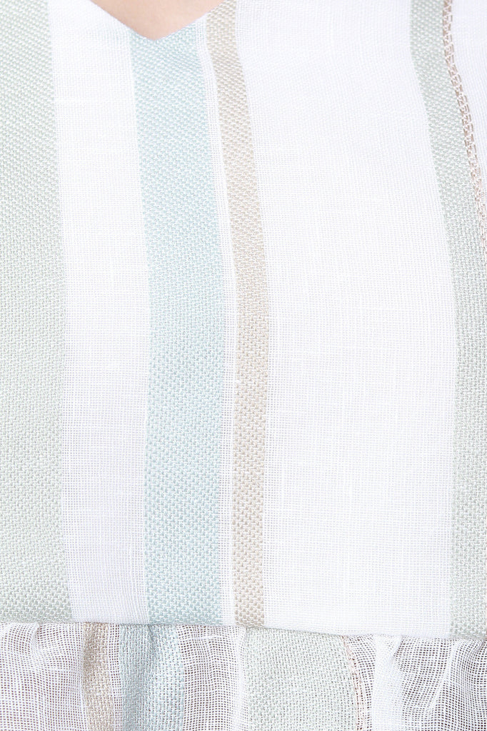 This crop top features lightweight semi-sheer fabric, vertical stripes, deep v-neck,  peplum hem, and partial lining. Accessories sold separately. Self: 80% Polyester, 20% Cotton. Lining: 97% Polyester, 3% Spandex.