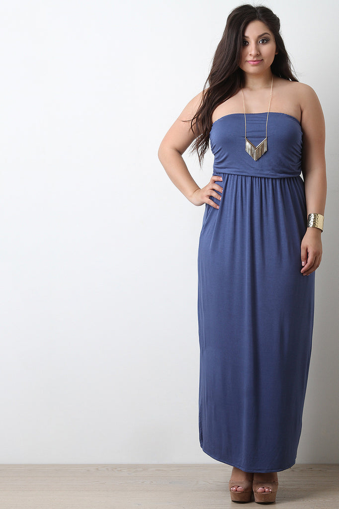 Solid Jersey Knit Strapless Maxi Dress