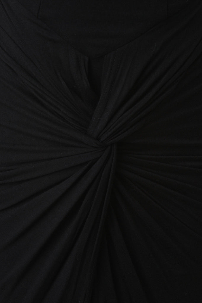 This dress features a round neckline, sleeveless design, twisted knot accent at front, racerback with exposed zipper closure, and stretchy sculpture fit. Partially lined. Accessories sold separately. 95% Rayon, 5% Spandex.