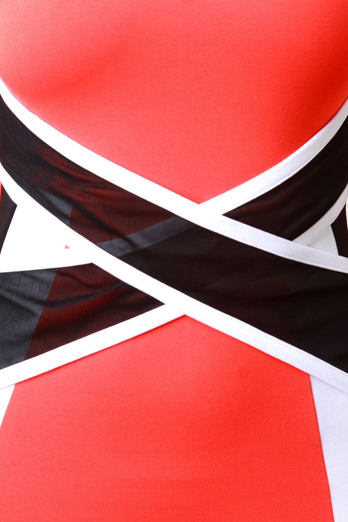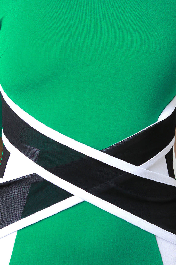 Round Neck Contrast Crisscross Mesh Band Midi Dress