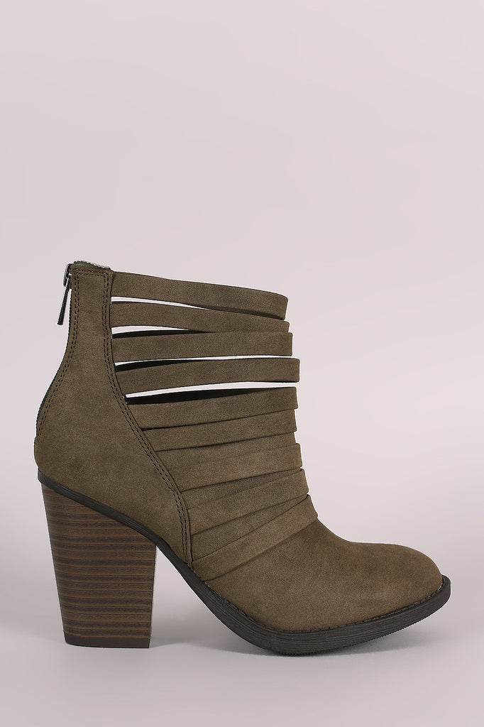 Soda Distressed Strappy Cuff Chunky Heeled Booties