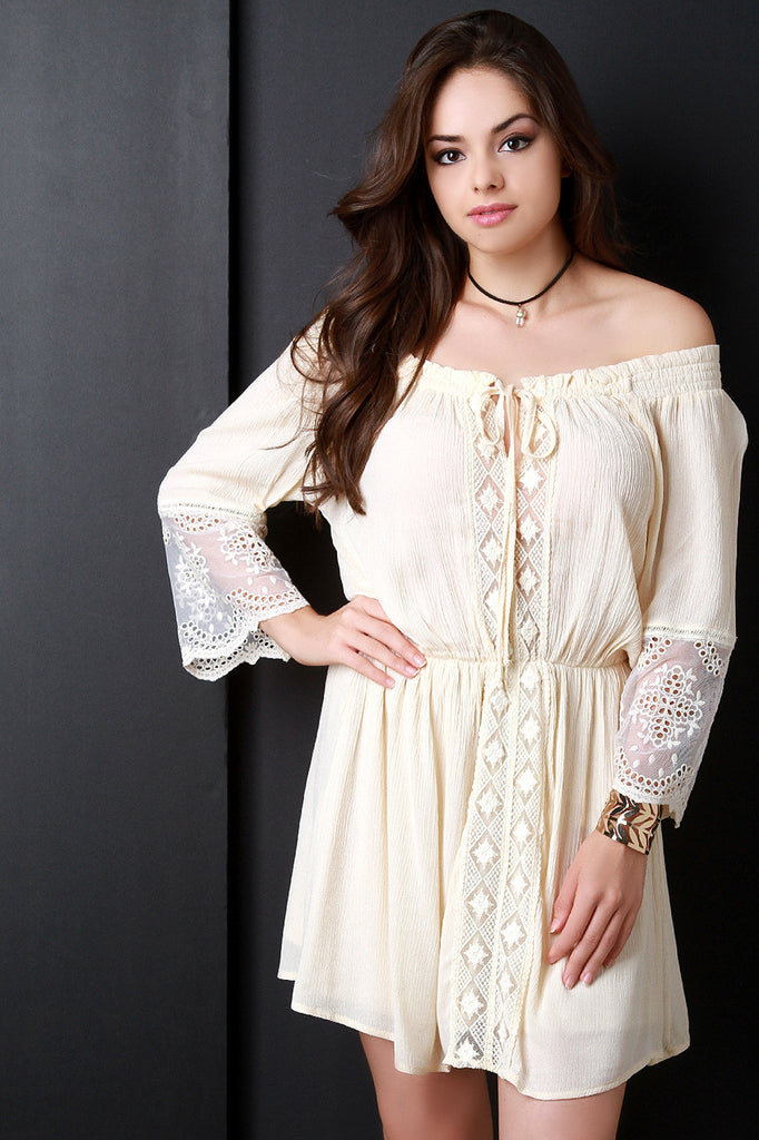 Off The Shoulder Crochet Trim Mini Dress