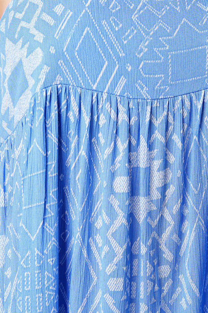This cutesy dress features a textured woven fabric, geometrical shapes print pattern, and adjustable spaghetti straps. Finished with a midi-length hemline. Accessories sold separately. Made in U.S.A. 100% Rayon.