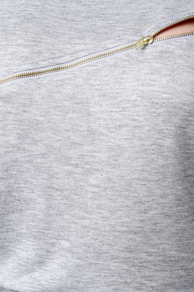 French Terry Round Neck Zipper Knee Slit Jumpsuit