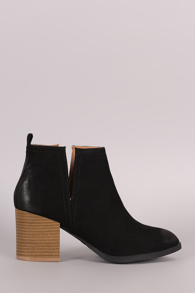 Qupid Suede Side Slit Pointy Toe Chunky Heeled Booties