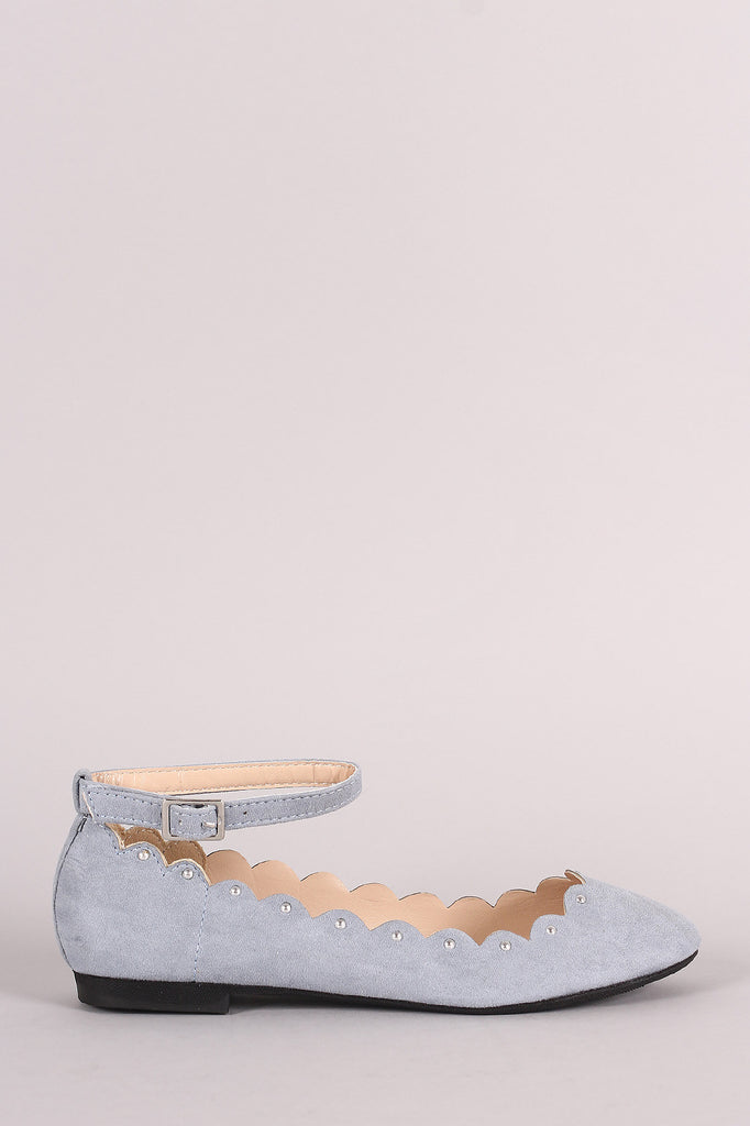 Qupid Suede Scalloped Studded Ankle Strap Ballet Flat