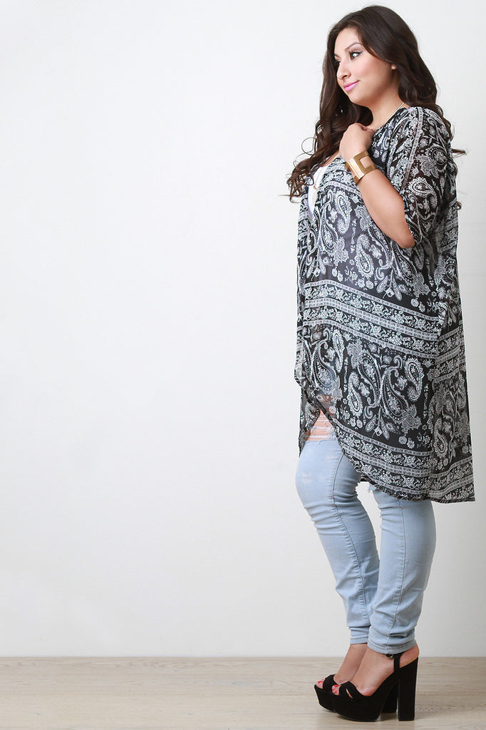 Paisley Chiffon Open Front Cardigan