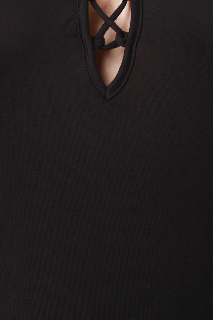 This plus size maxi dress features a soft knit fabrication, lace up deep v neckline, short sleeves, and a thigh high side slit. Accessories sold separately, Made in U.S.A. 95% Rayon, 5% Spandex.