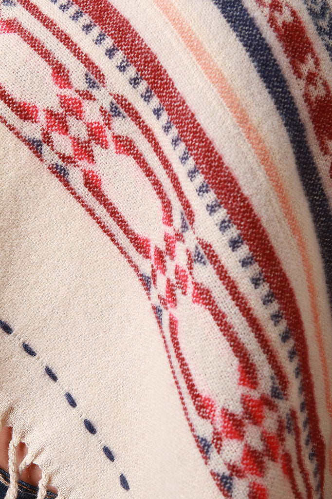 Reversible Navajo Print Fringe Poncho