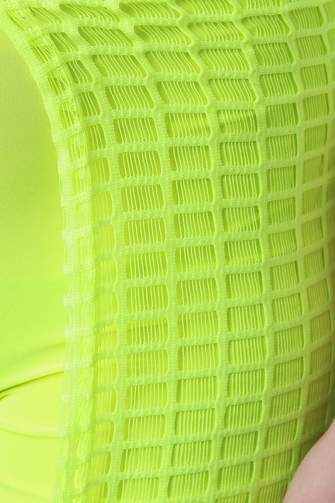 This maxi skirt features semi-sheer mesh, grid pattern, open front, and finished with stretch shorts. Accessories sold separately. Made in USA. 100% Polyester.
