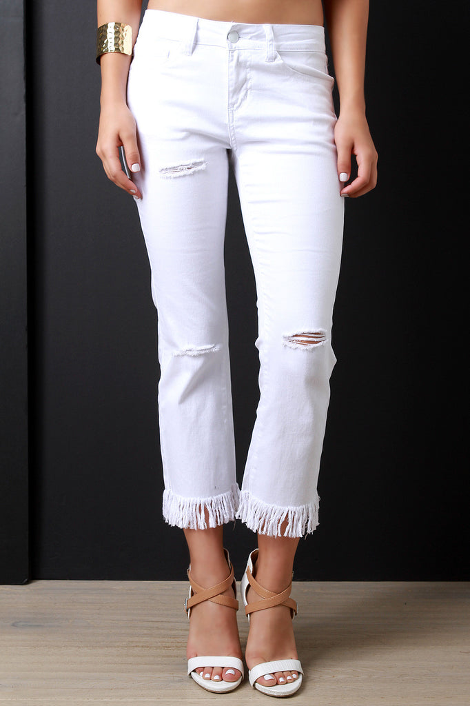 Fringe Hem Razorcut Bootcut Denim Jeans