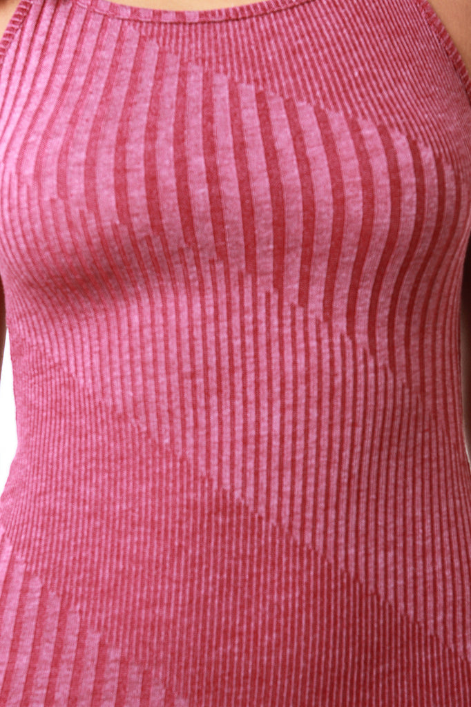 Diagonal Ribbed Crisscross Back Midi Dress