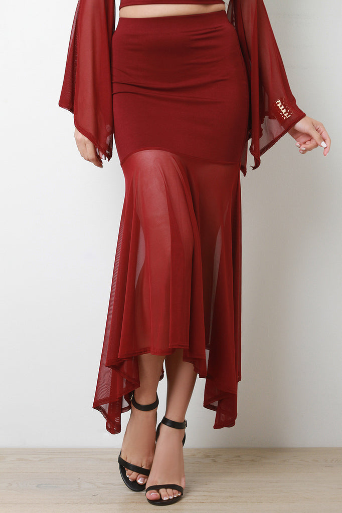 Semi Sheer Maxi Fit And Flare Skirt