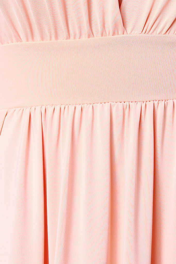 This daring dress features a smooth stretchy knit fabric, plunging v-neckline, wide padded shoulders, sleeveless fit, and front high vent slits. Finished with a wide waist band and maxi-length hemline. Accessories sold separately. Made in U.S.A. 95% Polyester, 5% Spandex.