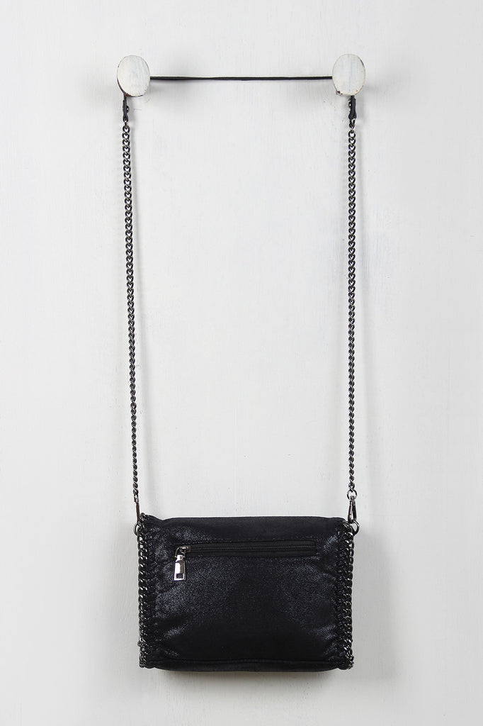 Shimmer Vegan Leather Chain Trim Crossbody Bag