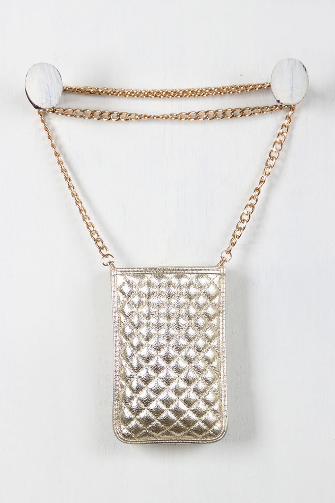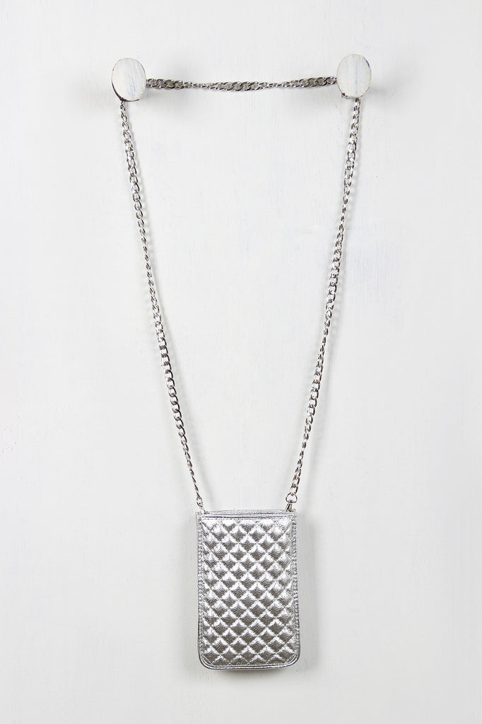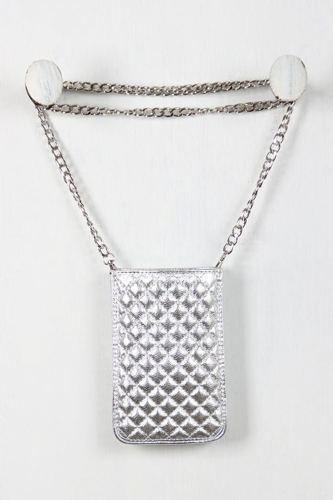 This stylish cross body pouch features a quilted vegan leather, separated inside pockets, and stitched sides. Bag is finished with removable chain shoulder strap.