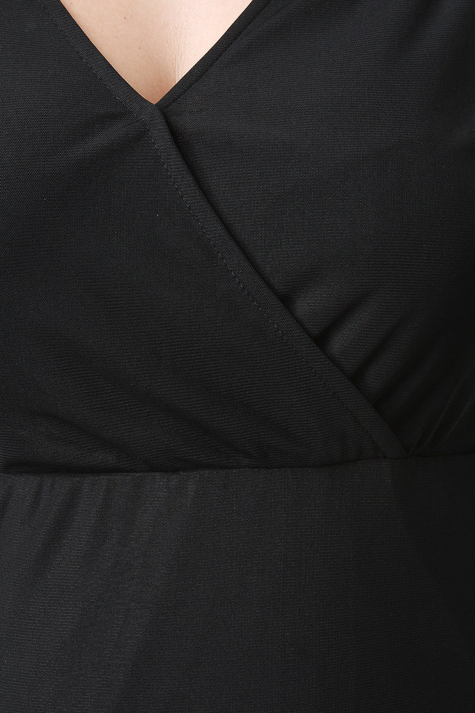 Semi-Sheer Mesh Drape Slit Maxi Dress