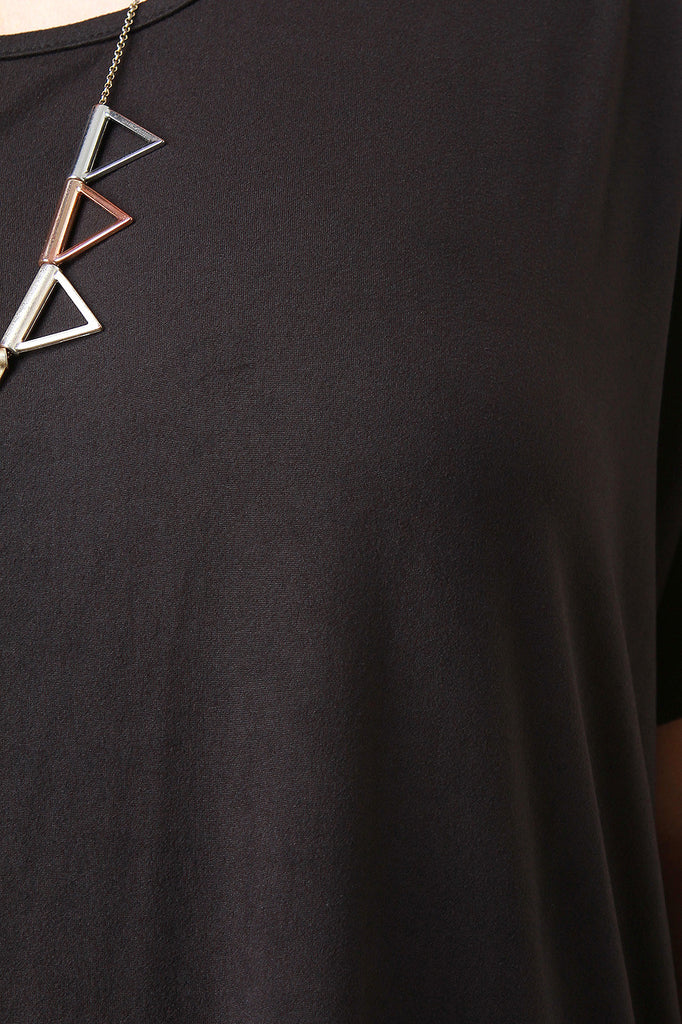 This casual plus size dress features a jersey knit fabric, scoop neckline, short dolman sleeves, and rounded hemline with side slits. Finished with a maxi-length hemline and relaxing fit. Accessories sold separately. Made in U.S.A. 95% Polyester, 5% Spandex.