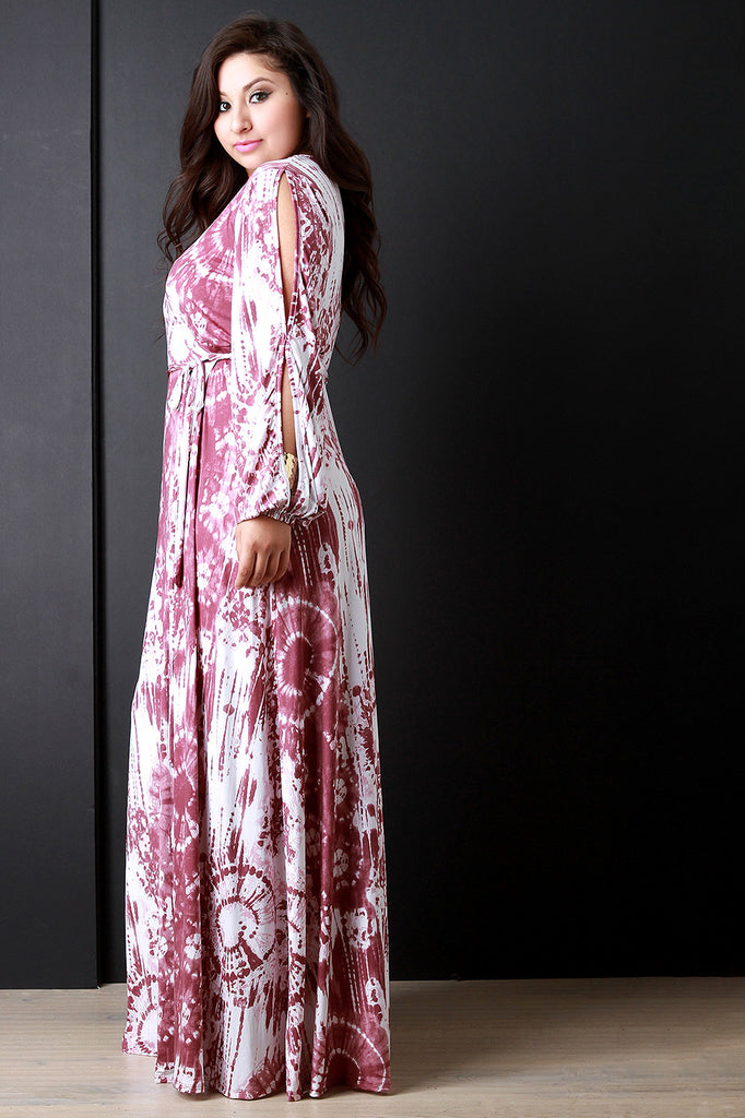 Splattered Tie Dye Slit Sleeves Maxi Dress