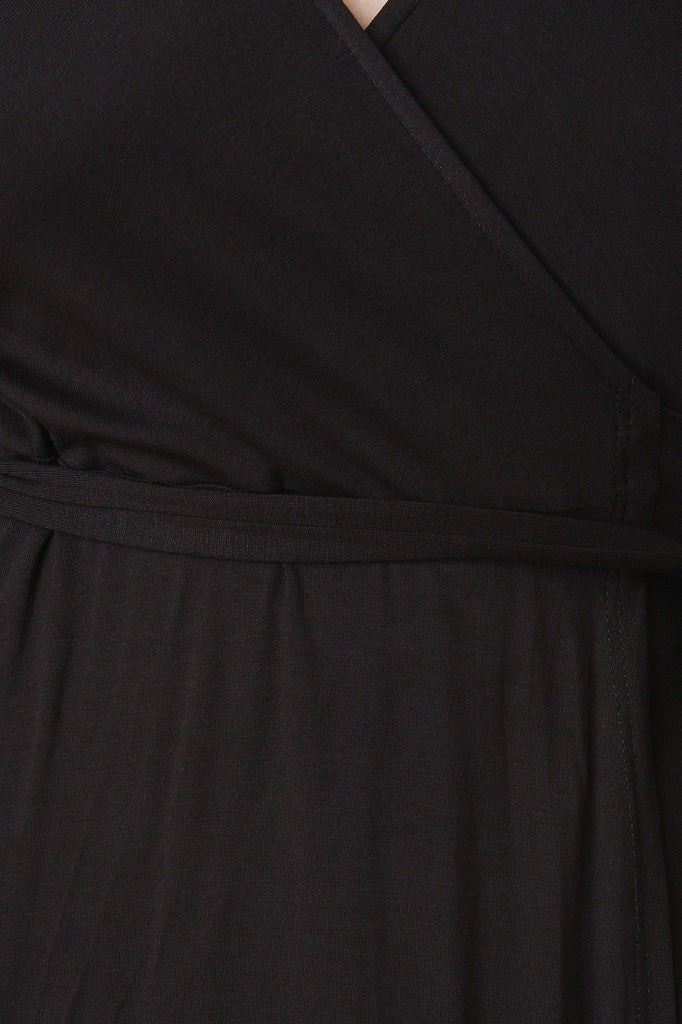 This chic jumpsuit features a deep v surplice neckline, deep v back, self tie waist, long sleeves, soft knit fabrication, and cropped wide cut legs. Accessories sold separately. Made in U.S.A. 95% Rayon 5% Spandex.