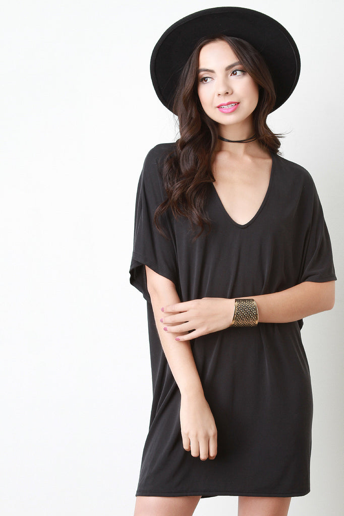 Relaxed Fit Dolman Sleeves Deep V Dress