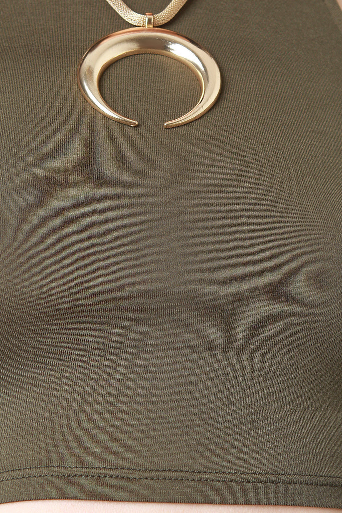 This crop top features soft jersey knit, round neckline, and sleeveless construction. Accessories sold separately. Made in USA. 95% Rayon, 5% Spandex.