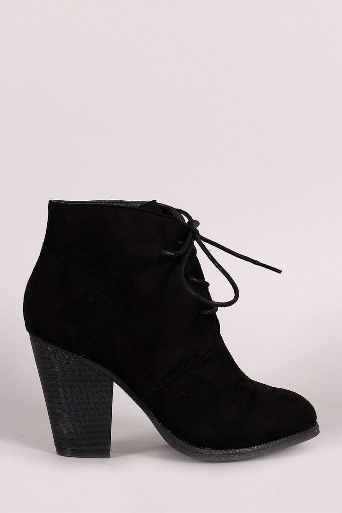 Liliana Almond Toe Lace Up Chunky Heel Booties